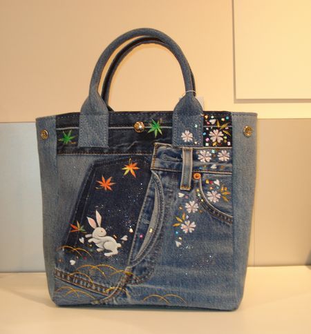 デニムリメイクバッグにかわいい!「小花うさぎ」をハンドペイント!