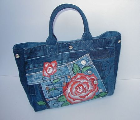 デニムリメイクバッグにかわいい!「赤バラ」をハンドペイント!
