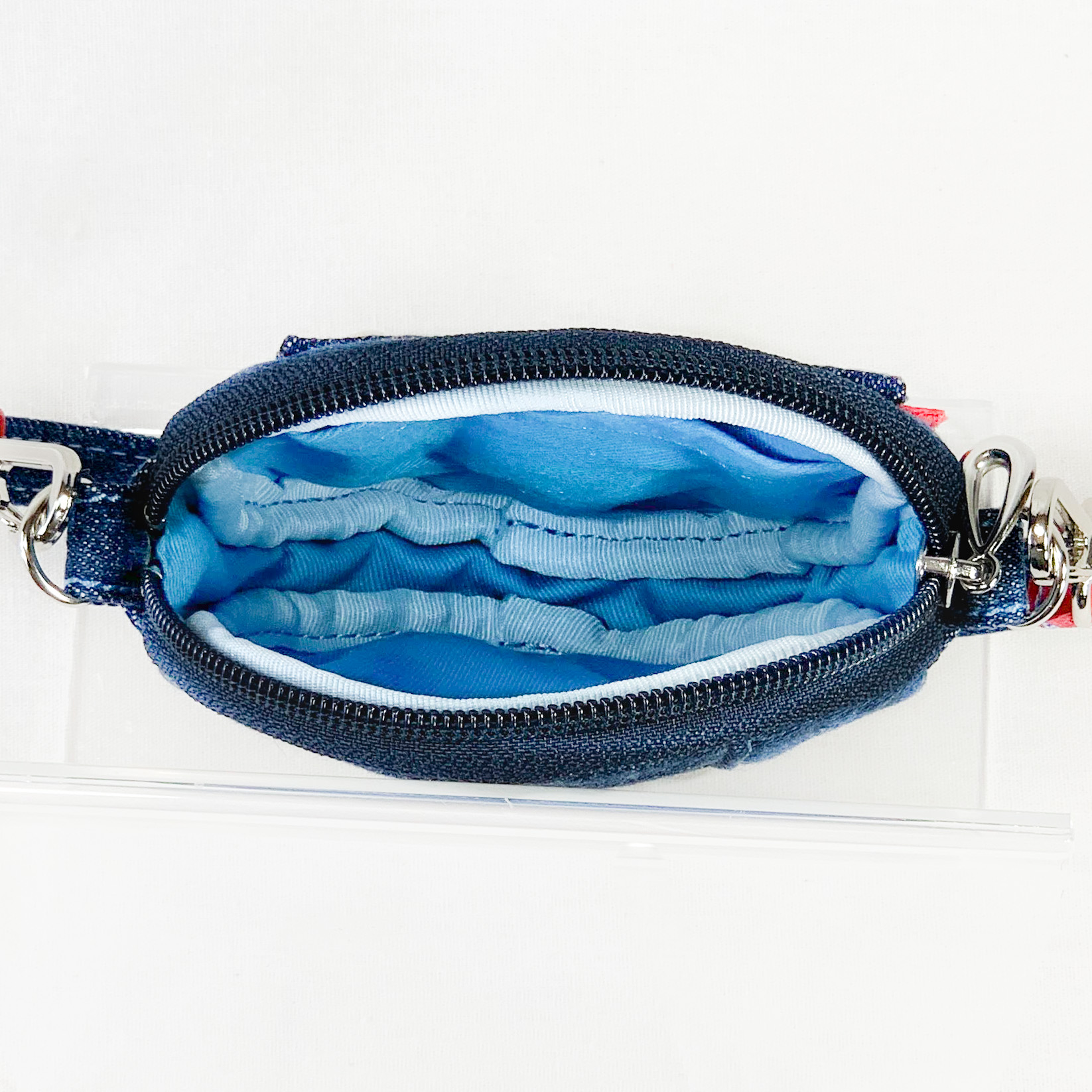 コインケースとしてはもちろん、ちょっとしたお化粧品や小物を入れるポーチとして、デニムストラップが付いておりますので、バッグの持ち手にぶらげたり、金具にひっかけたり、いろんな使い方を楽しんでいただけます。